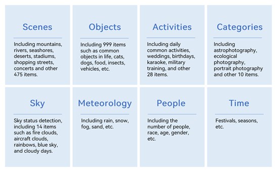 The analysis and identification of material content is the most important thing to achieve accurate matching. Meishe's huge AI tag library provides a powerful help for intelligent detection. In the One-click Video Editing scheme, the following tag dimensions are used to accurately identify user content scenes and achieve accurate recommendation.