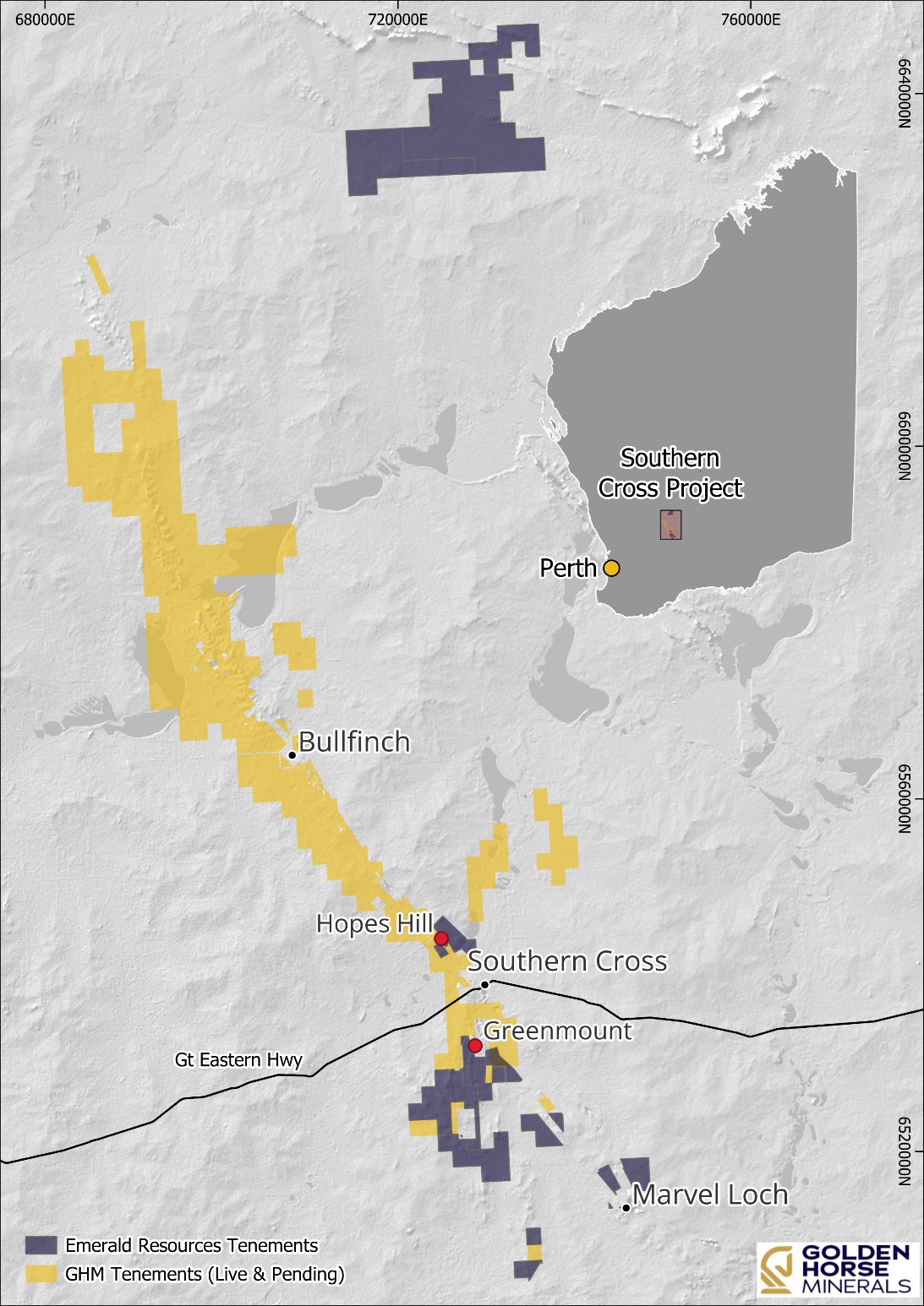 "We are thrilled to announce this transformative transaction for Golden Horse and our shareholders, and to have the strong support of Emerald as we prepare for our proposed ASX listing. This deal significantly enhances our Southern Cross landholding, including both greenfield tenements and historic mine sites like the Hope Hill Open Pit (with historic production 219koz @ >2g/t Au) and the Greenmount Project (15,789oz Au @ 7.3g/t Au).