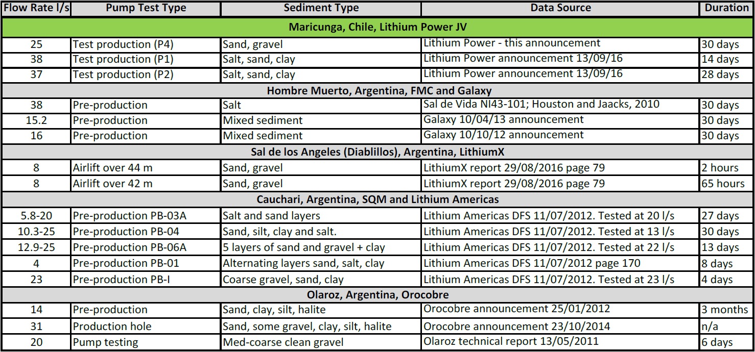 Initial flow rates from the pump testing are very encouraging as they rank amongst the highest reported values from other projects in South America (c.f Table 1).