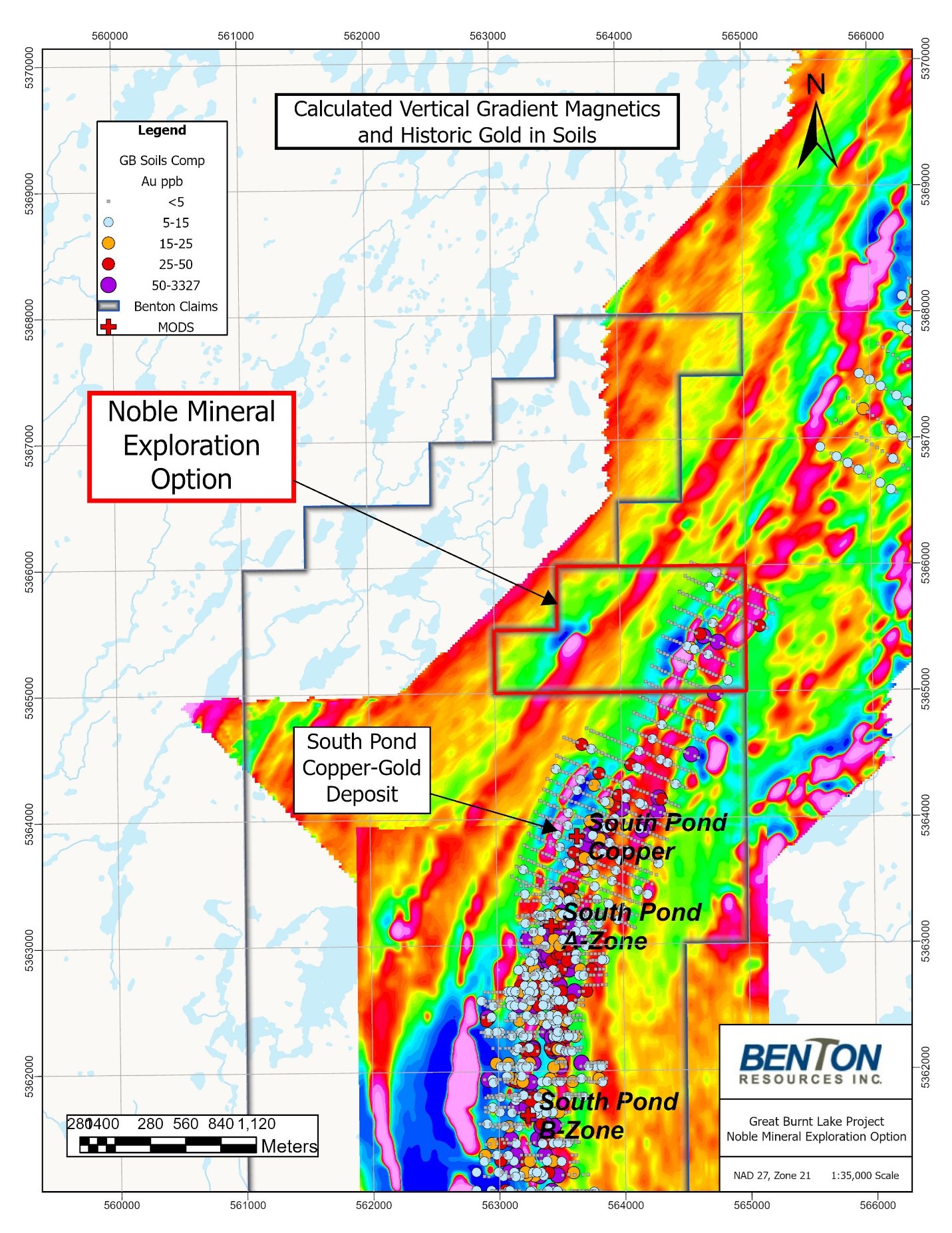 Benton Purchases Strategic Ground Directly Along Strike of the South Pond Gold Deposit from Noble Minerals