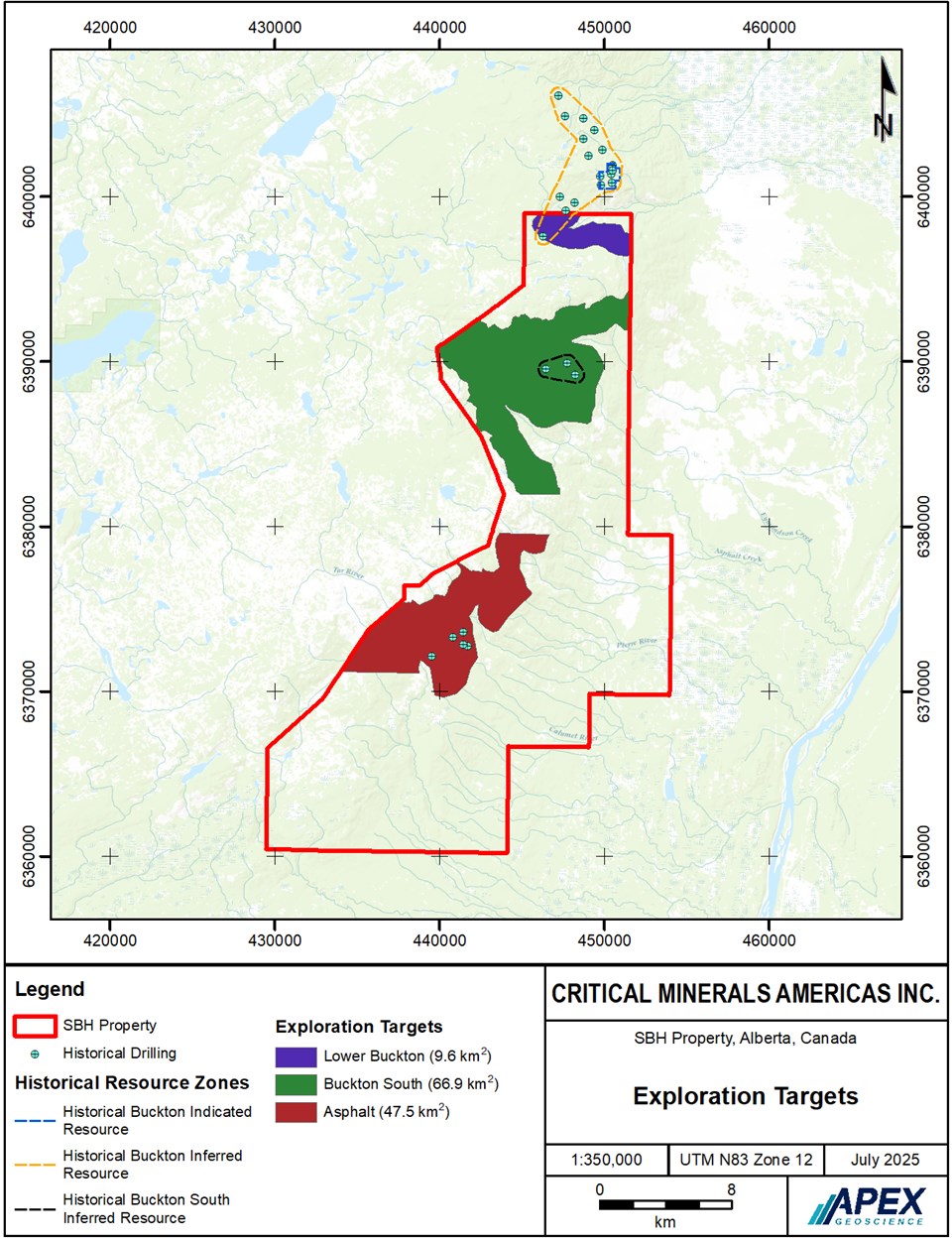 3 Dufresne, M. and Eccles, R. 2025. NI 43-101 Technical Report on the SBH Property Birch Mountains, Athabasca Region, Alberta, Canada. Technical Report prepared on behalf of Critical Minerals Americas Inc. by APEX Geoscience Ltd., August 29, 2025.