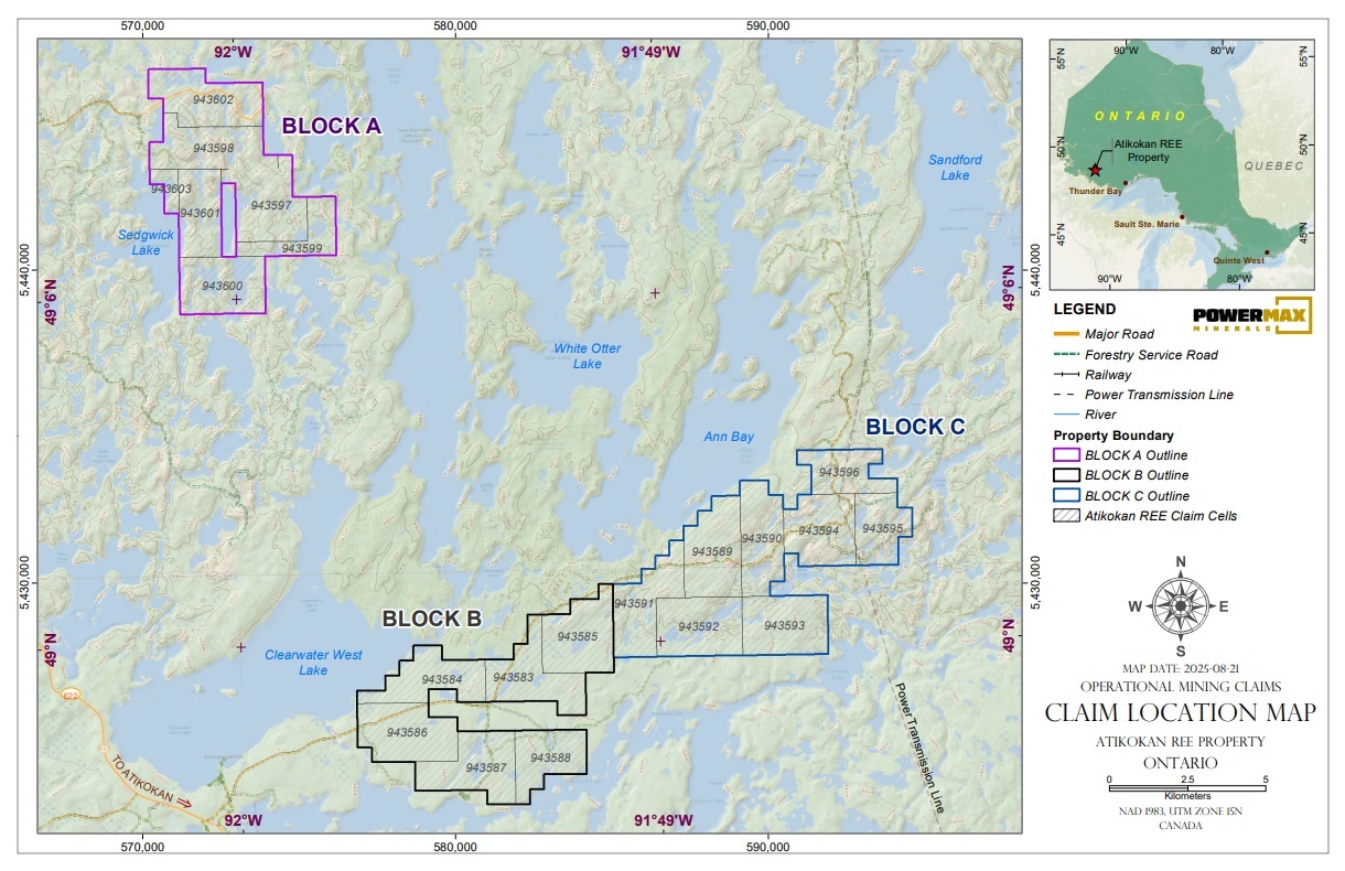 Paul Gorman, CEO of Powermax Minerals, commented: "We are excited to launch our exploration program at Atikokan, a property that holds potential for rare earth and critical metals within a promising geological corridor. This initiative aligns with our commitment to advancing projects that contribute to North America's critical minerals supply chain and the global transition to clean energy."