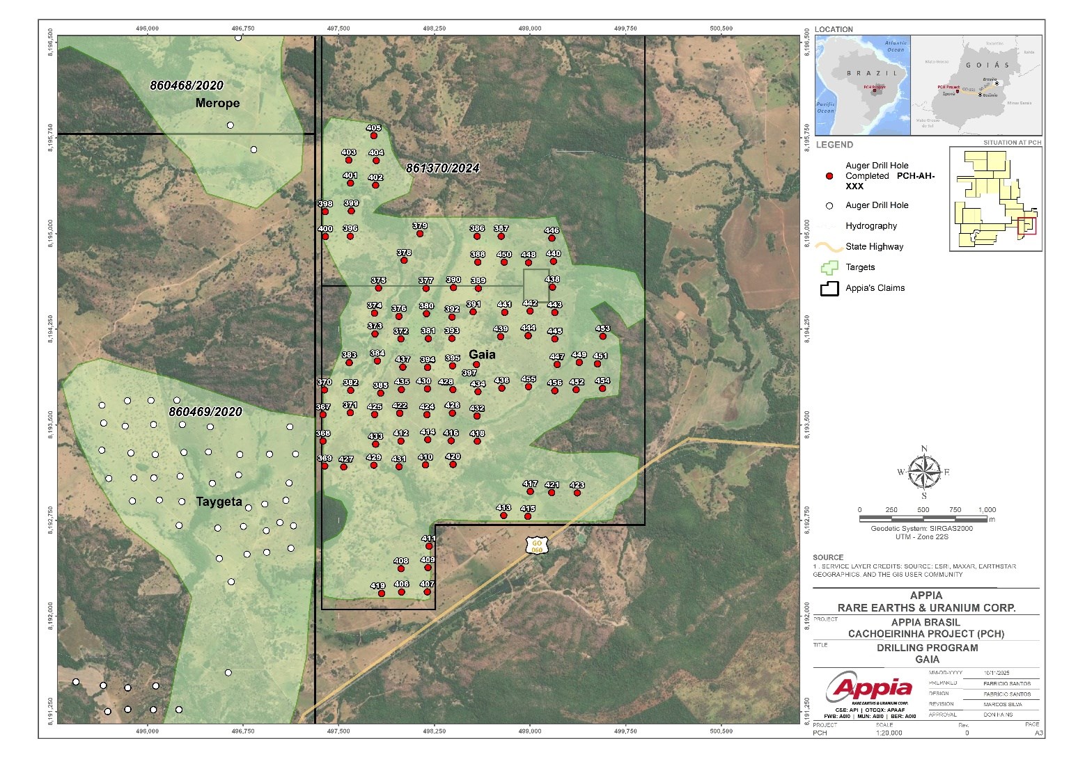 Toronto, Ontario--(Newsfile Corp. - October 16, 2025) - Appia Rare Earths & Uranium Corp. (CSE: API) (OTCQB: APAAF) (FSE: A0I0) (MUN: A0I0) (BER: A0I0) (the "Company" or "Appia") is pleased to announce the completion of the auger drilling campaign at the Gaia target and the advancement of a new auger phase at the Taygeta target, both within the PCH Rare Earths Project (ionic-adsorption clay, "IAC") in Goiás State, Brazil.