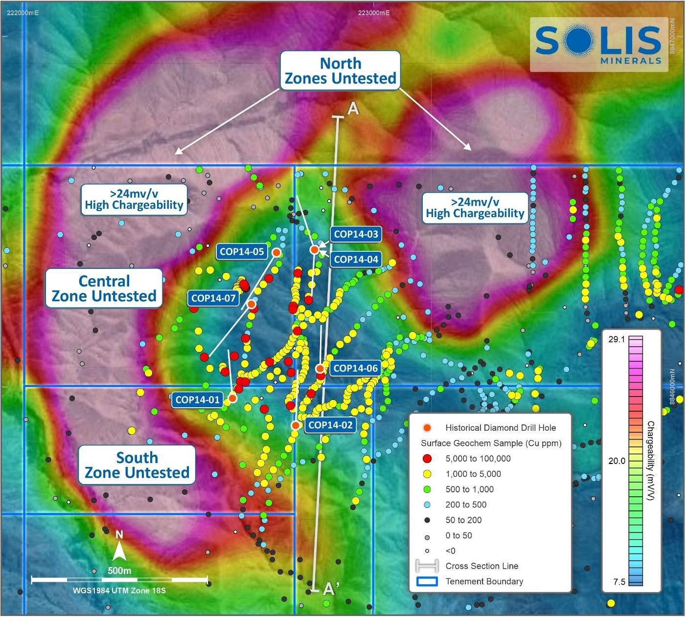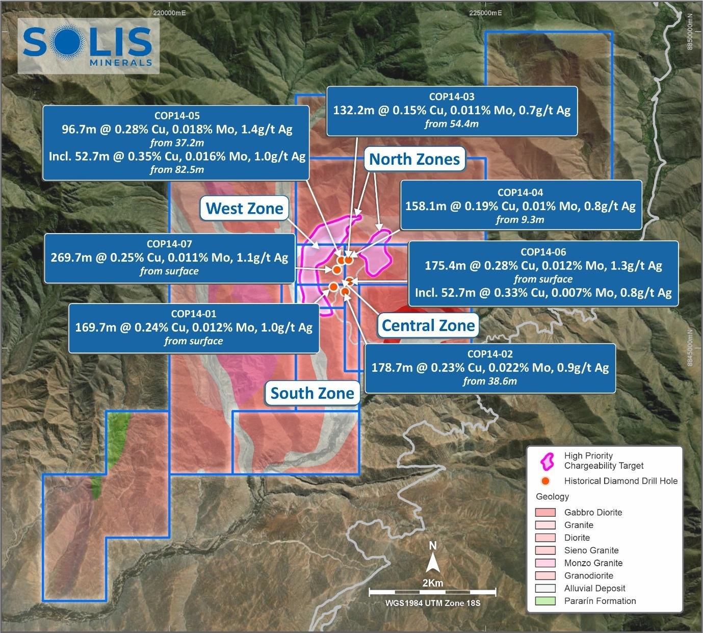 Historical drilling had limitations that led to a 2014 Technical Report, prepared under NI-43- 101 Standards, concluding that "the main geochemical and geophysical anomalies were left without verification by drilling". Solis Minerals plans to drill these in early 2026.