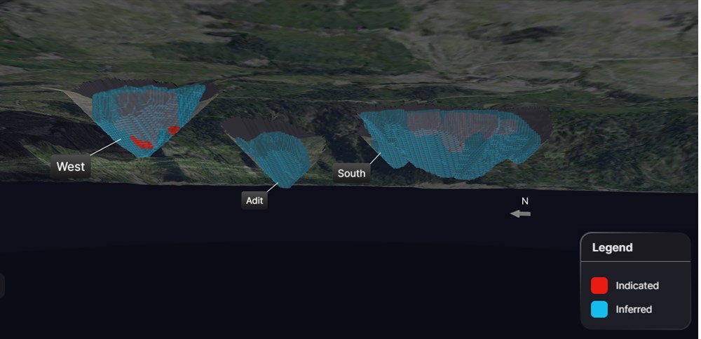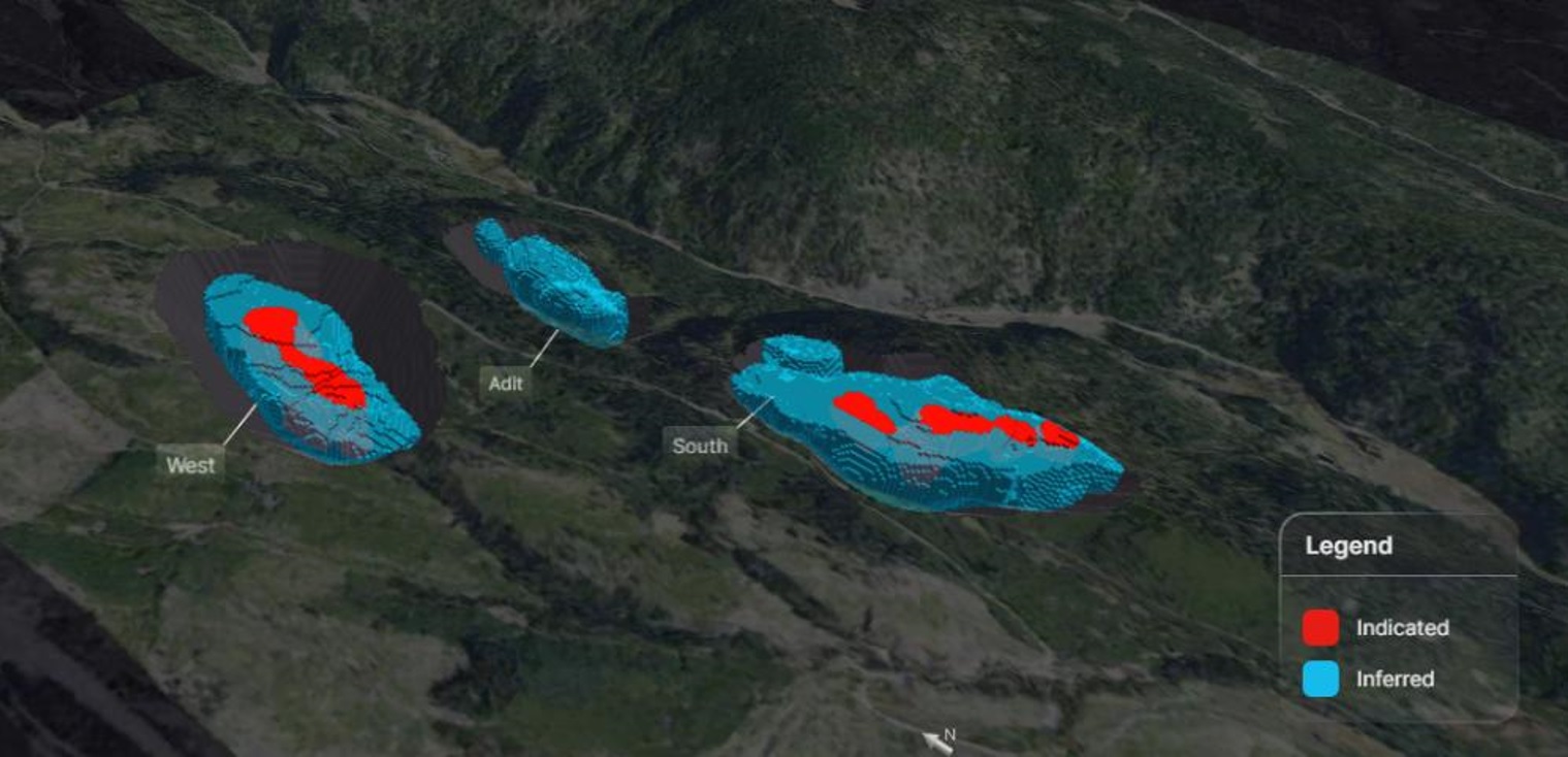 | Adit | Inferred | 20.1 | 0.34 | 0.03 | 2.79 | 0.38 | 151 | 0.02 | 1.80 | 168 | 2025-12-09 |