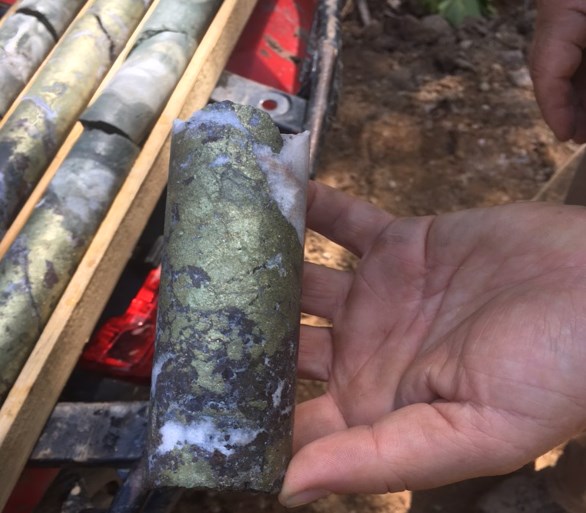 Vein with semi-massive sulfides - Ky-18-14 (1,158 g/t Ag over 3.00 meters core length)