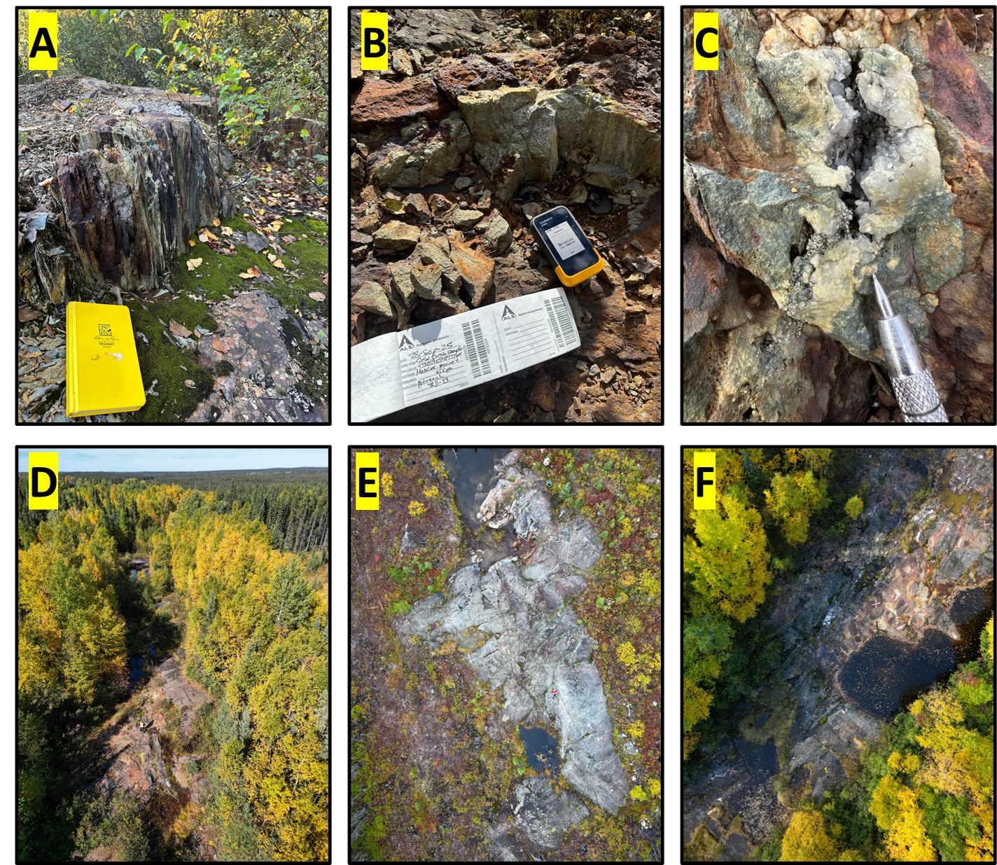 High-grade surface samples: Surface grab samples from massive pyrite-pyrrhotite lenses and mineralized deformation zones returned up to 48.4 g/t Au, with additional samples assaying 15.6 g/t Au, 11.9 g/t Au, and 9.16 g/t Au from sulphide-rich basalt and graphitic units.