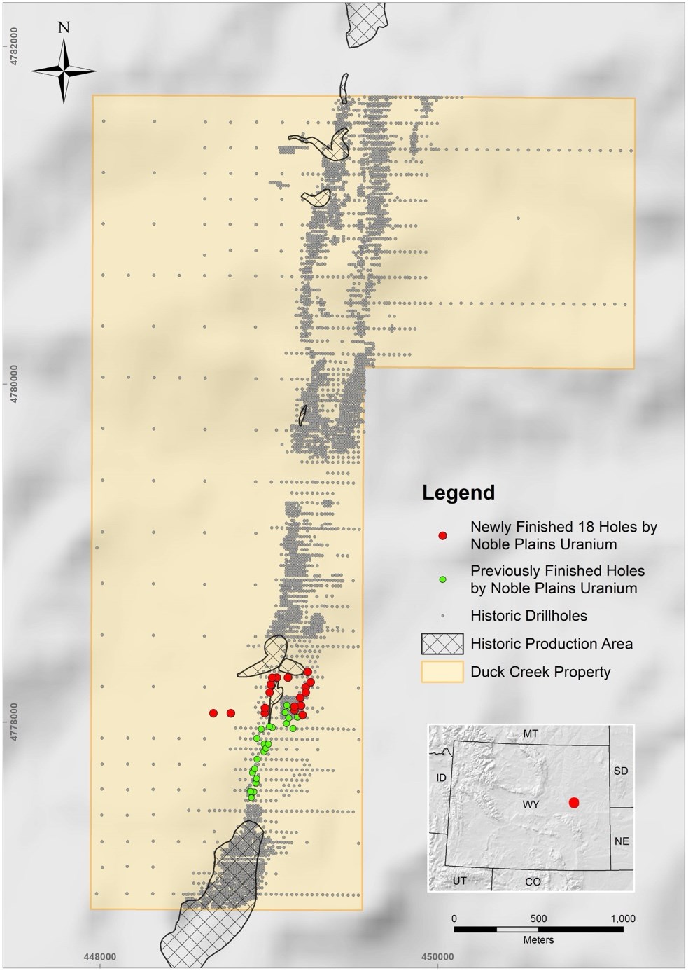 Vancouver, British Columbia--(Newsfile Corp. - December 16, 2025) - Noble Plains Uranium Corp. (TSXV: NOBL) (OTCQB: NBLXF) (FSE: INE0) ("Noble Plains" or the "Company") a U.S. focused uranium exploration and development company, is pleased to announce the third set of drill results with a further eighteen drill holes completed at its flagship Duck Creek Project in Wyoming's Powder River Basin. Today's drill results continue to build on the strong prior results of the first 24 holes released on December 1st & 9th 2025, confirming a geological trend with strong potential, being proven by efficient and cost-effective drilling. The drill campaign to date maintains an impressive 78% success rate over the 42 completed drill holes.