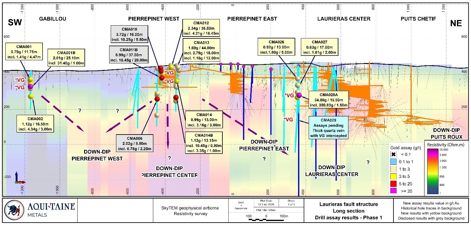 Vancouver, British Columbia--(Newsfile Corp. - February 19, 2026) - Aquitaine Metals Corp. (the "Company" or "Aquitaine") today reported additional results from the Company's ongoing 8,800 metre Phase 1 drill program at its Limousin gold and critical metals project ("Limousin" or the "Project") in Nouvelle-Aquitaine, France.