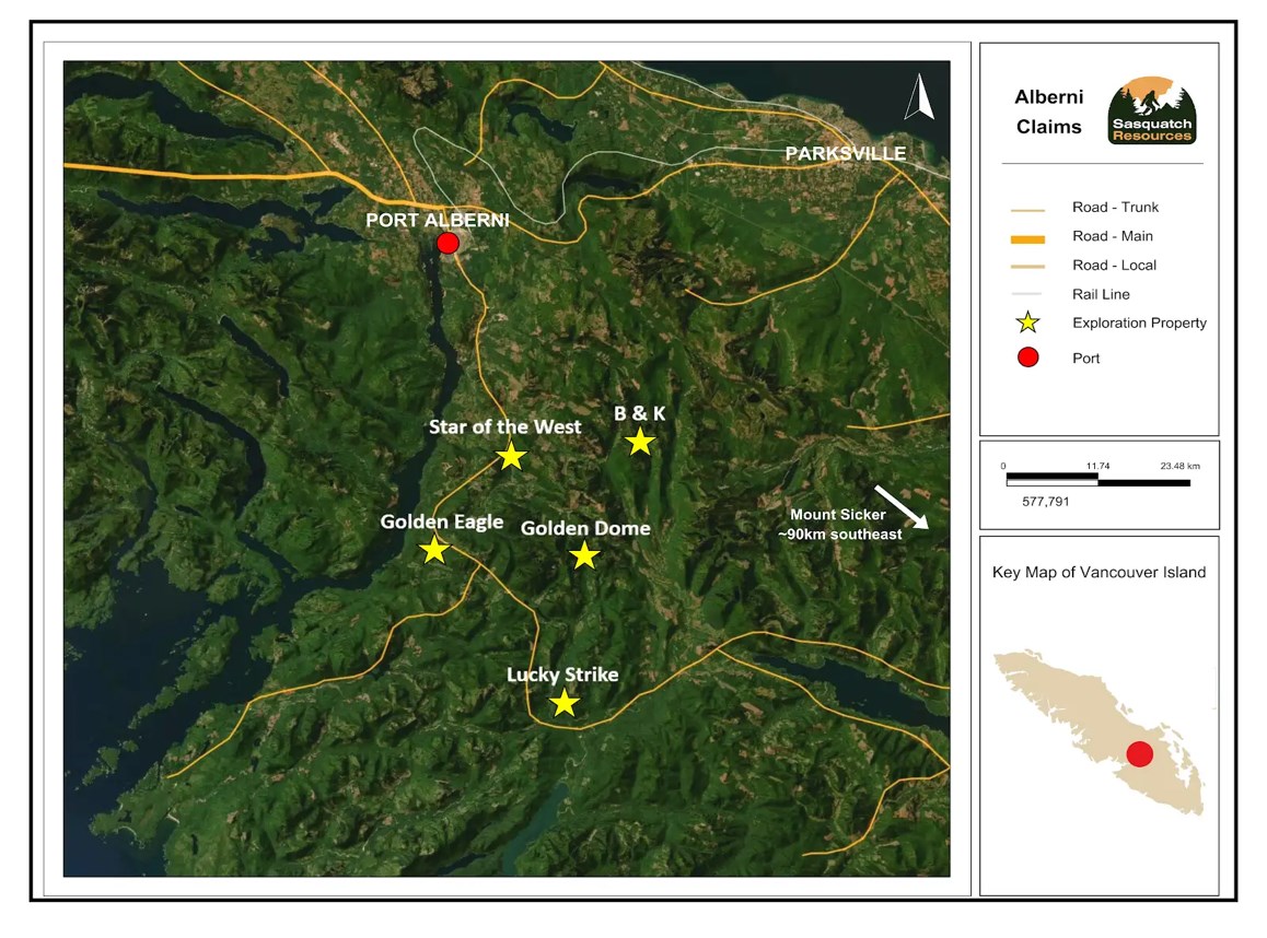 Sasquatch Resources Corp. is a mineral exploration company primarily focused on reclamation of waste rock, both at legacy mine sites and in areas where logging roads have encountered and been constructed with significant volumes of mineralized material. In many cases, waste rock at such sites is easily accessible, occurs in significant volumes, and can contain potentially economic grades of copper, gold, silver and other valuable minerals. Removing the high-sulphide material from the waste at these sites (which includes both valuable minerals but also potentially harmful elements such as sulphur, lead and arsenic) can often be effectively done through a relatively simple ore-sorting process, and the high-sulphide material can be removed from the site and sold to an existing end processor. This process can allow the Company to address environmental and other hazards while adding critical minerals and other valuable elements to the supply chain, all while minimizing the need to add new mines and/or mining infrastructure. To this end, the Company has acquired and is assessing a number of project areas that have waste rock potential, including the Mount Sicker Property in southern Vancouver Island, British Columbia, the Blue Grouse Property, located about 30km from the Mount Sicker Property on the south side of Lake Cowichan, the Santana Property (the area known as the former Santana mine) on Quadra Island, British Columbia, the Port Alberni Claim Group (including Lucky Strike, Star of the West, B & K, Golden Dome and Golden Eagle) about 90km from Mount Sicker, and the Slesse Property near Chilliwack, British Columbia.