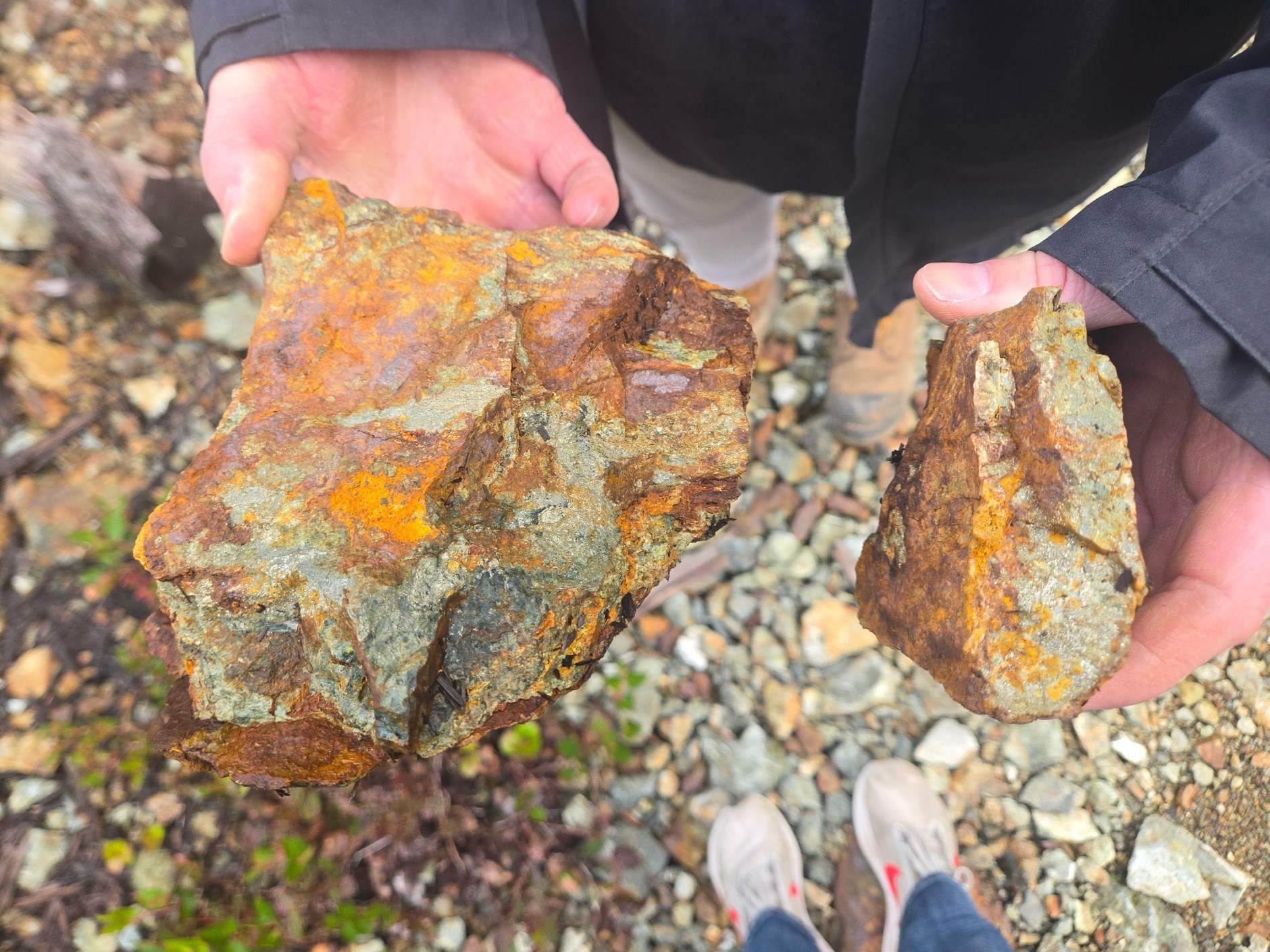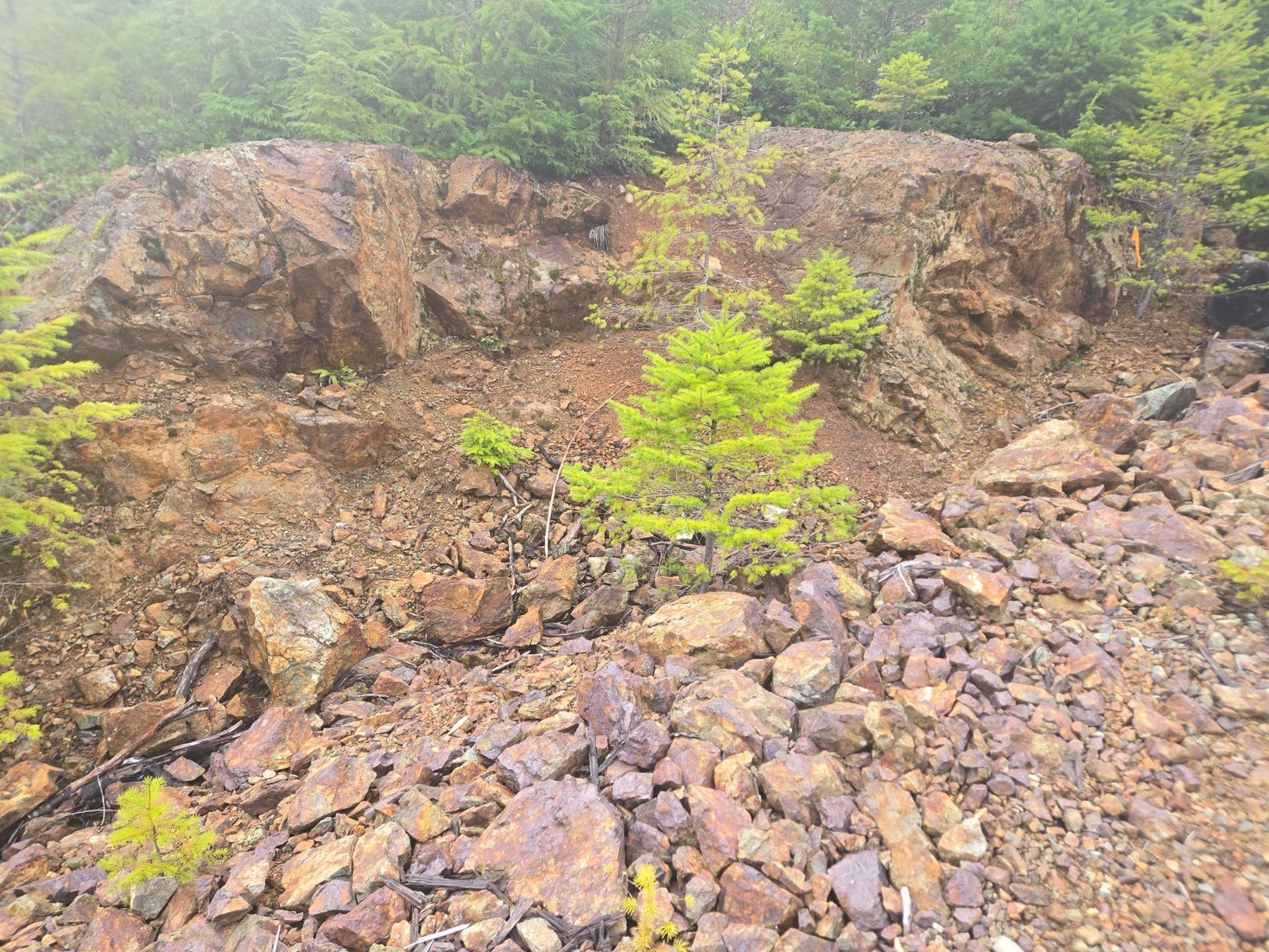 Similar to Golden Dome, above, there are significant areas within Golden Eagle where logging roads have been built through and with material that appears to be rich in sulphides (pictured below).