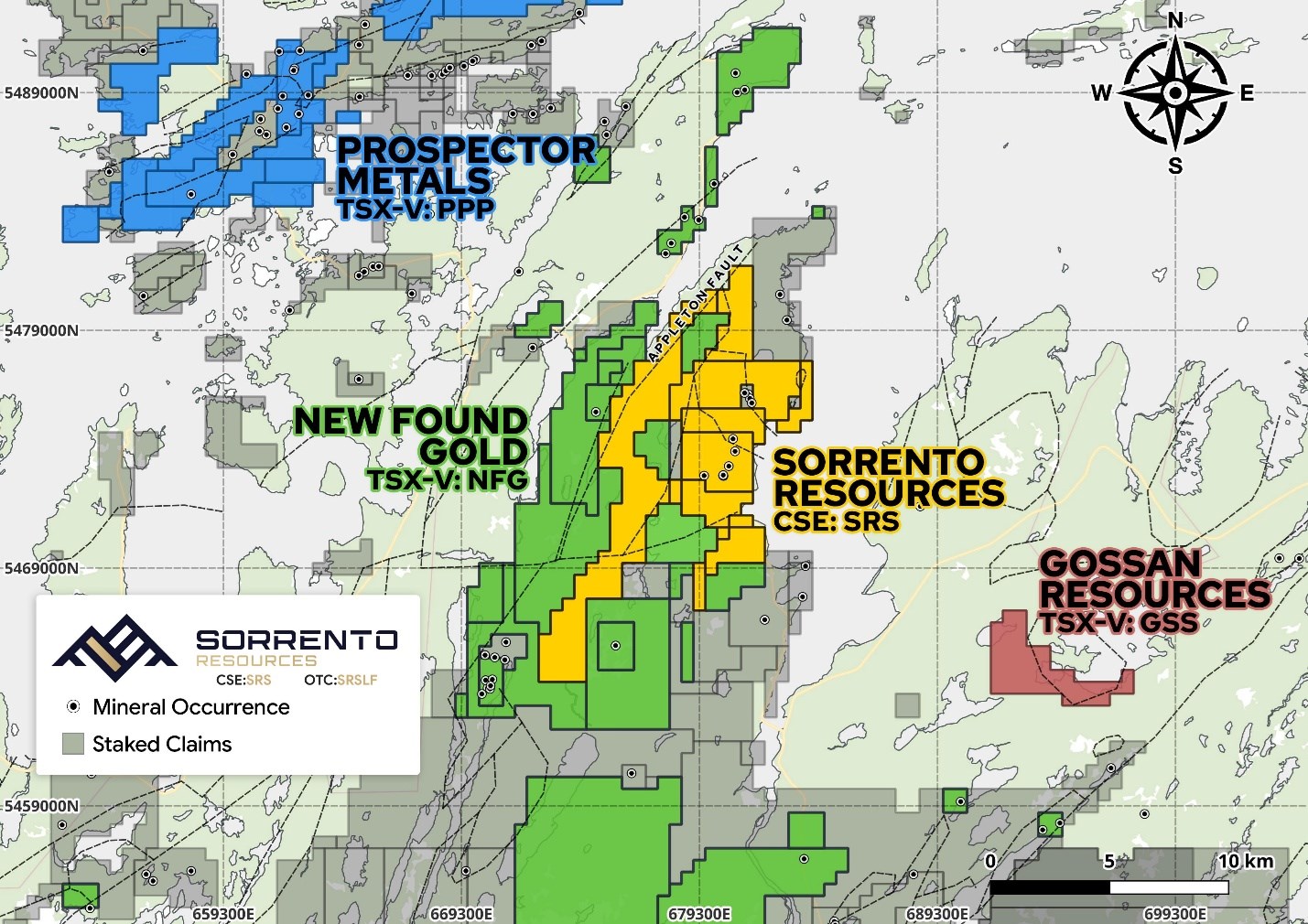 Sorrento is engaged in acquisition, exploration, and development of mineral property assets in Canada. Sorrento's objective is to locate and develop economic precious and rare earth element, gold, and base metal properties of merit in including the Bottom Brook Project, Rodgers Cove Gold, and Harmsworth (VMS) project all located in Newfoundland.