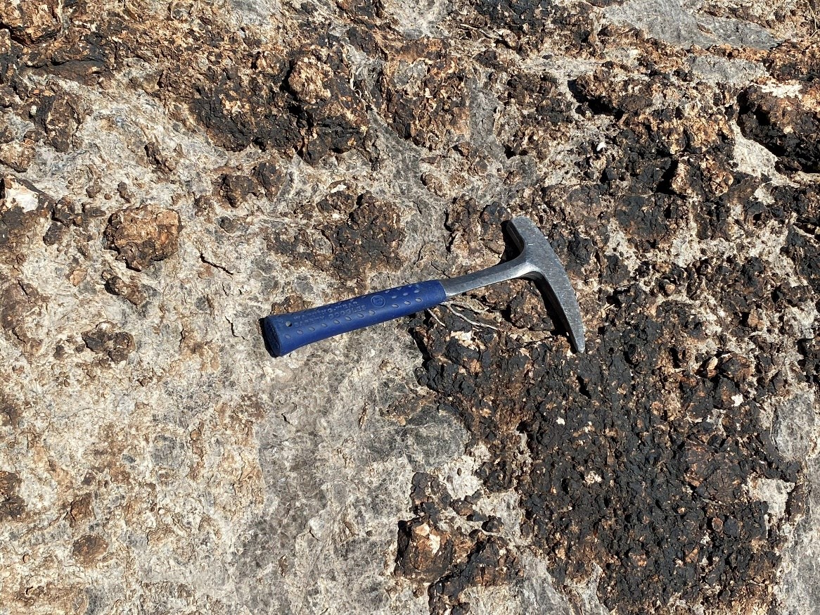 Holes GC26-95 and GC26-97 through GC26-101 (Table 1) confirm the presence of gold in the subsurface over meaningful grades and widths. The mineralized zone is part of the historical Black Dyke structure and confirms the presence of gold identified in previous exploration efforts. Figure 3 provides a preliminary view of this newly drilled zone and reveals that the gold-bearing holes cut the surface breccia a short distance, up to 250m, down-dip. Given that other NE-trending structures in the district have served as gold-bearing conduits, such as Tyro, Figure 2 suggests that a similar relationship exists at Black Dyke. A short distance into the hanging wall, volcanic rocks deposited upon the Precambrian granite are strongly altered (kaolinite-silica-iron oxide) and brecciated (Figure 3).