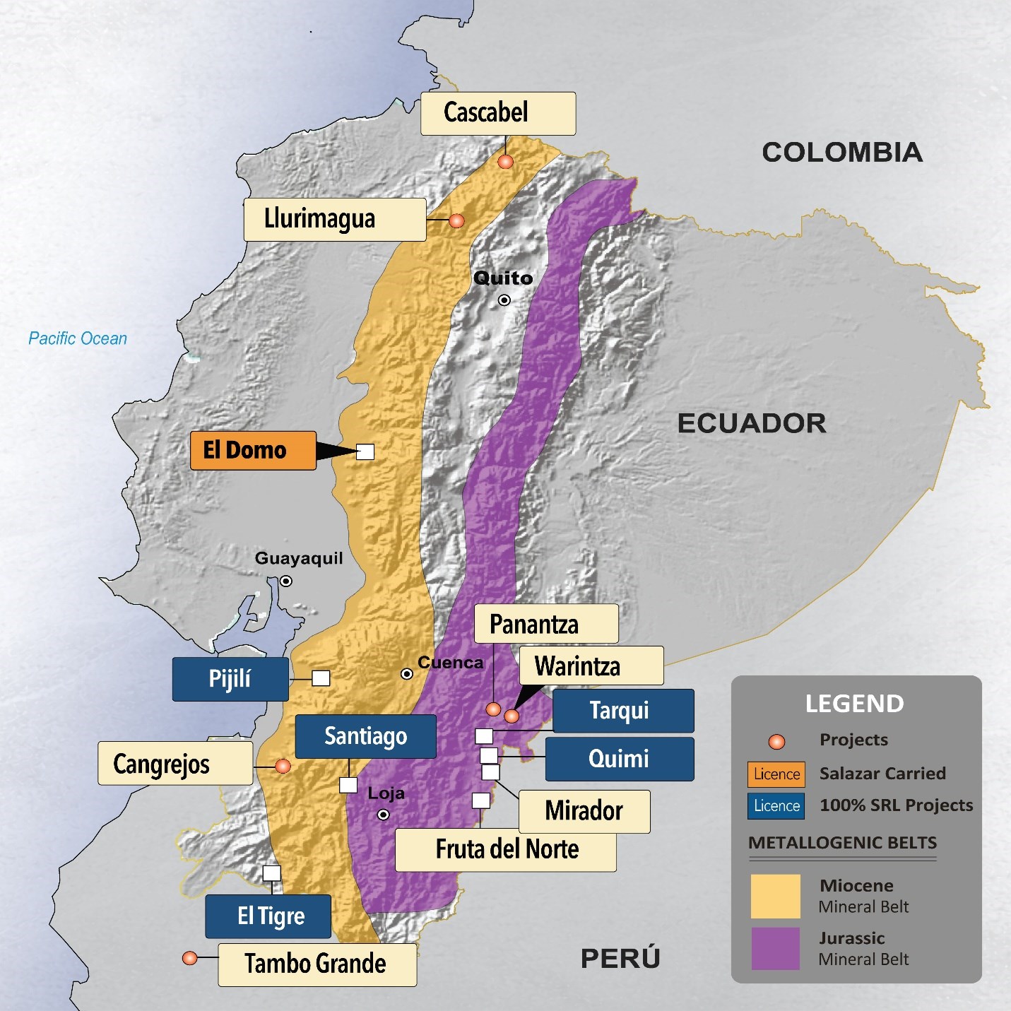 Importantly, Salazar also retains a 25% carried interest in the El Domo copper-gold project, currently under construction and expected to become Ecuador's next producing mine, providing the Company with potential near-term exposure to mine development and future cash flow.