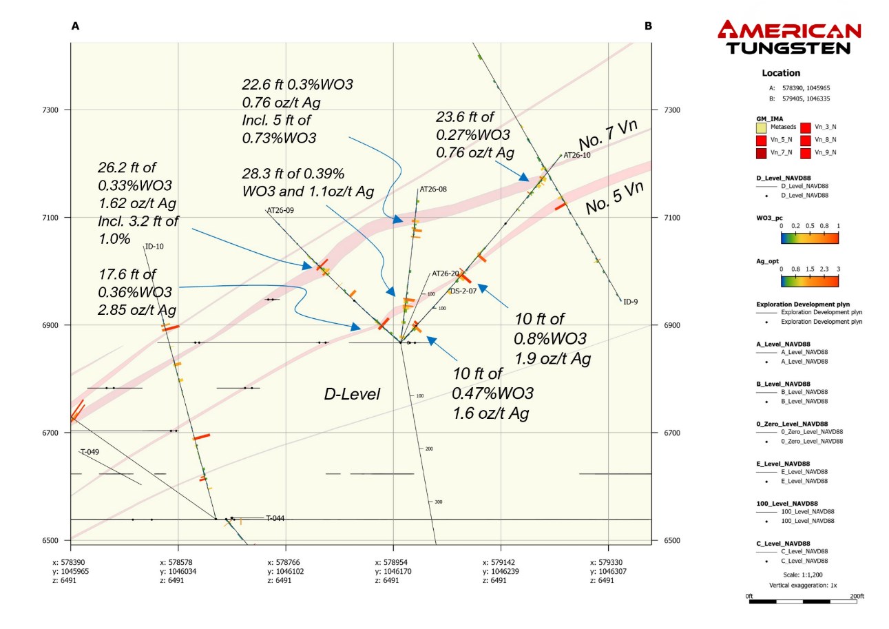 "The results from the second drill station on the D-Level further reinforce the continuity and scale of the tungsten-silver vein system at the IMA Mine," said Ali Haji, CEO of American Tungsten Corp. "The consistent mineralization widths encountered across all drillholes support our understanding of the vein geometry and its extension up-dip and along strike from historical workings. These results provide continued confidence as we systematically advance drilling to define a modern, mineable resource."