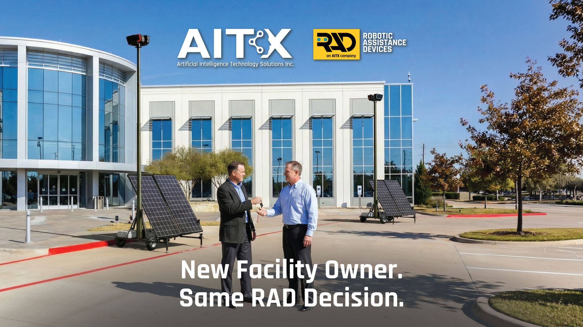 Detroit, Michigan--(Newsfile Corp. - April 1, 2026) - Artificial Intelligence Technology Solutions, Inc. (OTCID: AITXD), a global leader in AI-driven security and productivity solutions, along with its wholly owned subsidiary Robotic Assistance Devices, Inc. (RAD), today announced that its RIO™ autonomous security devices have been retained at a Southern California property following its recent sale from a major consumer products manufacturer to a leading aerospace technology provider. After assuming control of the site, the new property owner conducted an independent review of the existing security infrastructure and elected to maintain the deployed RAD systems based on their demonstrated operational performance.