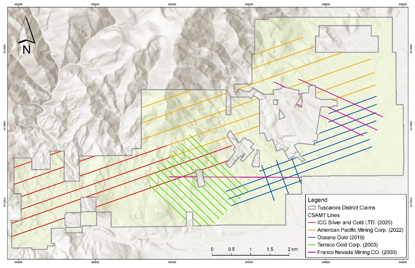 Toronto, Ontario--(Newsfile Corp. - April 9, 2026) - ICG Silver & Gold Ltd. (CSE: ICG) (FSE: JI0) ("ICG" or the "Company") is pleased to report the results of a recently completed Controlled Source Audio Magnetotelluric ("CSAMT") geophysical survey at the Tuscarora District, ("Tuscarora" the "District" or the "Project") located in Elko County, Nevada. The survey was designed to add CSAMT coverage on the western flank of the Project and help delineate structures, lithologic contrasts, and alteration patterns potentially associated with silver and gold mineralization.