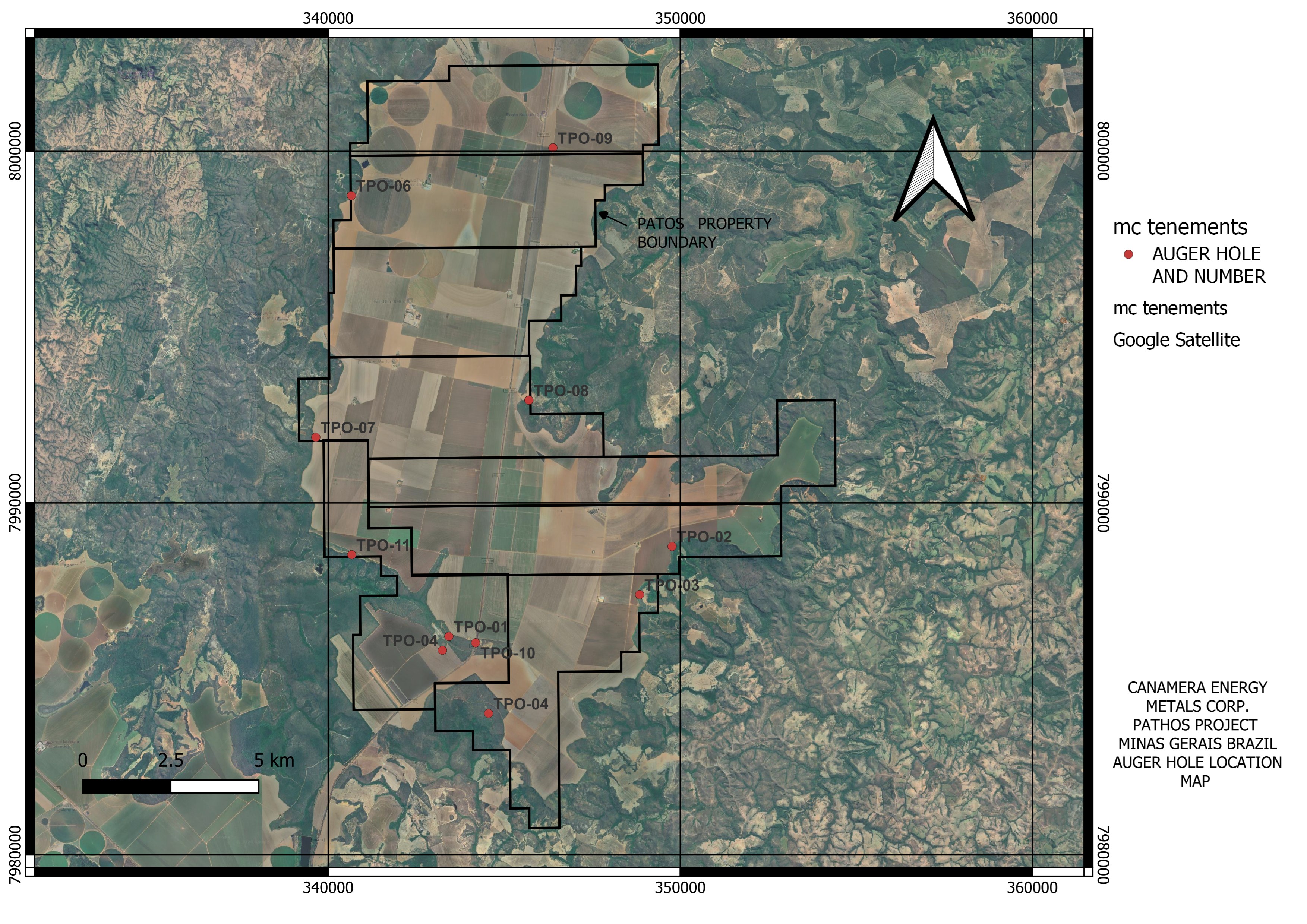 "We are very pleased with the execution of the Patos due diligence program," said Brad Brodeur, CEO of Canamera Energy Metals Corp. "Our field team completed 11 auger holes across the Project and confirmed the geological profile we expected to see - a well-developed kamafugite-derived regolith sequence that is consistent with the ionic clay REE model that has attracted growing attention across the Mata da Corda region. The geology is encouraging, and we now await assay results to inform our acquisition decision."