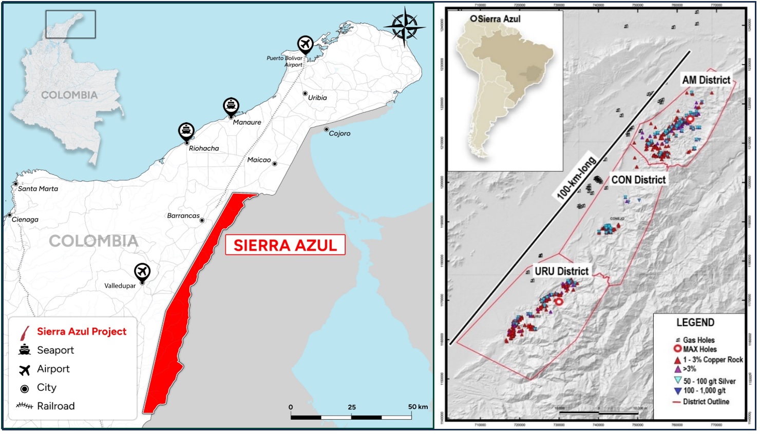 Sierra Azul Copper Silver in Colombia, sits along the Colombian portion of the world's largest producing copper belt (Andean belt), with world-class infrastructure and the presence of global majors (Glencore and Chevron). Fully funded by global miner Freeport-McMoRan (NYSE: FCX) relating to rights to earn up to 80% by funding $50 million of accumulated expenditures. Backed by support of Freeport-McMoRan, the Max team views as validation of the geological and mining potential of Sierra Azul. The 2026 exploration season is well underway.