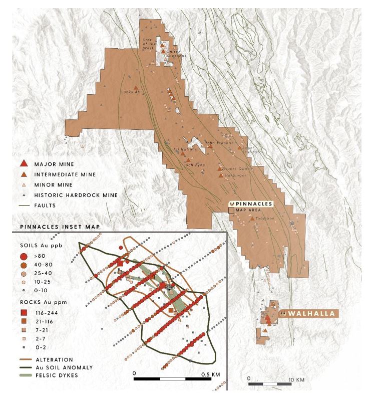 Figure 2: Walhalla Gold Project and Pinnacles Target Geochemistry Results, Victoria Australia