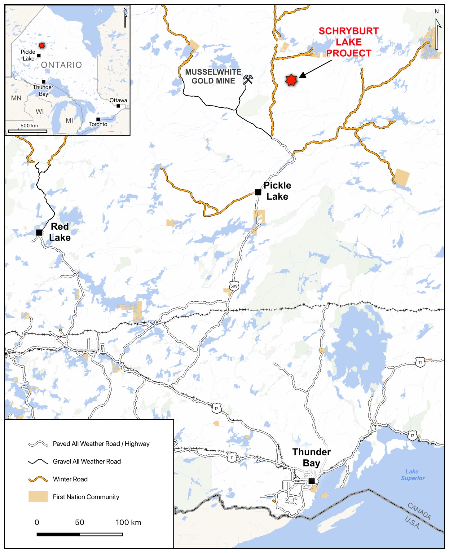 Figure 1: Location of the Schryburt Lake Project, Patricia Mining Division, northwestern Ontario.